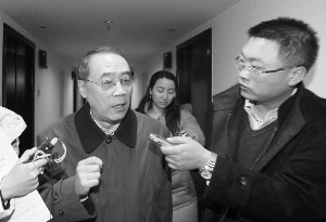 3月4日,全國政協(xié)委員、中國投資有限責任公司副總經(jīng)理汪建熙在小組討論結(jié)束后被記者圍堵 本報記者 史麗 攝