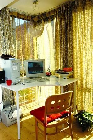 可在客廳角落以簡(jiǎn)單的桌椅營建一個(gè)工作空間,再以屏風(fēng)來遮擋桌椅。