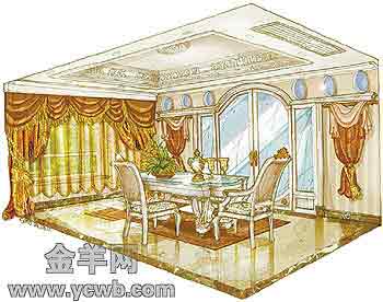 客廳客廳是這套房的核心,中央調(diào)空之后,頂仍很高,顯得很氣派。房主挑選的是布藝沙發(fā),十分簡(jiǎn)單。為了將客廳做得豐富一點(diǎn),我們重點(diǎn)在墻面上做了一些法國(guó)風(fēng)味的花紋和線條,而天花和地面則簡(jiǎn)單處理,僅僅在天花上加了一些弧線,地面用的是大理石,以突出墻面的層次感。