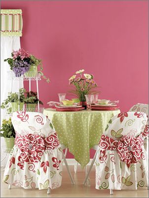 普普通通的折疊椅隱藏在顏色鮮艷,款式新穎的椅套里,與桌上鋪的色彩夸張的桌布相映成趣,平凡立刻得到升華,感覺(jué)像置身在一場(chǎng)熱鬧的大Party中。