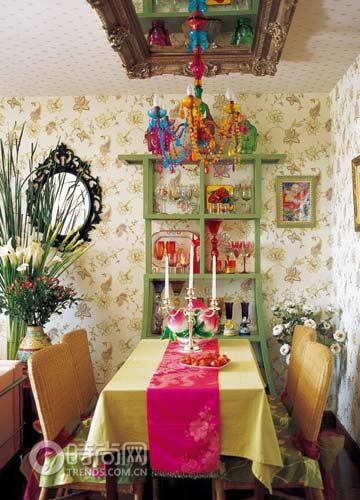 可周欣卻快樂地堅守著自己兒時的夢想,她一如既往地喜歡花,喜歡艷麗的顏色,喜歡一切蘊藏著豐富情感的工藝品。沒有隱藏,沒有矯情,就那么直露地、坦率地、簡單地呈現在你面前,猛然間也許會讓習慣于矜持的你無所適從,但開放便意味著包容,所以當這么多色彩鋪滿你整個視野時,你并不會覺得眩暈和燥熱,反而生出一種清爽而淡雅的感覺,讓你不由得佩服起這個女人對色彩和情感的把握,而你也會相信這種把握不是刻意為之的,而是由內心散發(fā)出的對生活的熱愛,它的力量之強足以打破任何對色彩運用或者家居裝飾時的束縛。