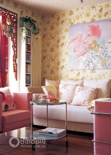 從這滿屋的花形裝飾和明麗色彩中,你可以感覺到一個如花般散發(fā)著清新氣息的女人,也是一個情感豐富和外溢的女人。