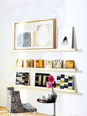 可以用在墻面上釘層板的方法解決掛畫的問題,長(zhǎng)度依墻面而定。這樣,你不需要把墻面摧殘得千瘡百孔,還方便根據(jù)心情隨時(shí)調(diào)整畫的位置或者更換新購(gòu)置的作品。畫的擺放要根據(jù)尺寸和內(nèi)容,過(guò)于零亂或者死板都影響效果。