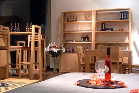 餐桌式:將餐桌與酒吧結(jié)合,使酒吧兼作餐桌。一般可以設(shè)計成“T”型或“L”型,吧臺可分為上下兩層。下層挑出一部分,做成折疊式,支起時形成小餐桌,供數(shù)人用餐,放下時就成為酒吧,可減少使用面積,支架可利用吧柜的門窗。吧柜設(shè)計得稍大一些,用以存放酒具及餐具。由于一臺多用,占地少,尤適宜無餐廳的小面積居室。