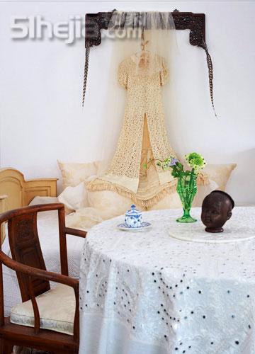 客廳一角,是女主人結(jié)婚時穿過的婚紗,代表著他們對那份美好記憶的珍藏。