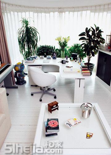 探訪張亞東工作室,找到卻并不容易。如果不是工作人員次次提示,我們很容易走錯。社區(qū)本來就曲曲折折,何況它還在這曲折中最深處的一個褶子里。終于發(fā)現(xiàn)它。貼著地表,第一層。外表,和周圍的窗,走廊,全部一樣,看不出特殊。進門,終于震住。滿眼沖刷的都是白色。白色墻壁,白色木地板,白色窗簾,白色家具,白色桌椅,白色電器。甚至,連鍵盤也是白色!完全是一個純白的夢境,被人誤闖入。遍地瀑布般的綠植給了白色一些清新。別著急,室外郁郁蔥蔥的,也是綠色。像是綠色森林里的純白小木屋,田園詩式的建筑。