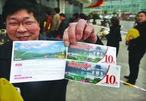 昨天,一位車友正在展示剛剛領取到的“杭州旅游消費券”。當日,總價值十萬元的杭州旅游消費券在南京發(fā)放,據(jù)了解,此次發(fā)放通過南京廣播電臺向車友定向發(fā)放,每人一份(價值100元),領完為止。快報記者 泱波 攝
