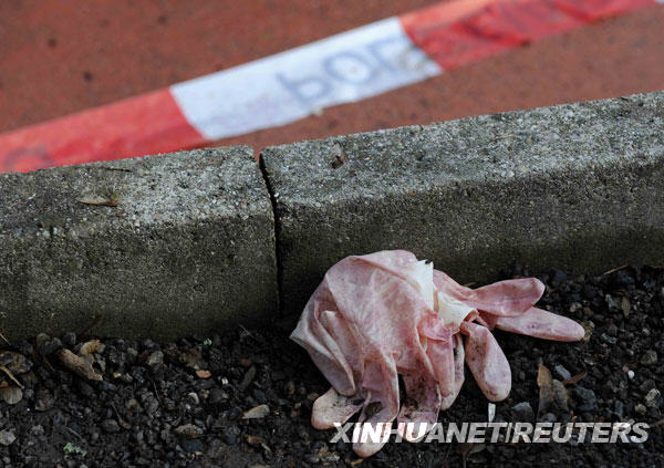 3月11日,在發(fā)生槍擊案的德國(guó)斯圖加特市附近小鎮(zhèn)溫嫩登一所名為艾伯特維爾的中學(xué)外,一雙沾滿血跡的手套被遺棄在地面上。新華社/路透