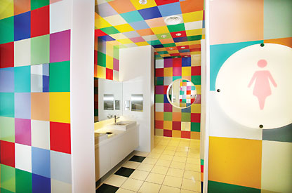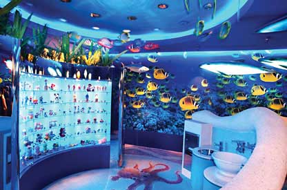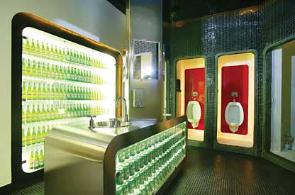 臺(tái)**中中友百貨公司推出的十三套主題盥洗設(shè)備,從普普藝術(shù)到巴洛克風(fēng)格,將馬桶及其盥洗空間設(shè)計(jì)成叢林或水族世界,每套主題盥洗設(shè)備造價(jià)與裝設(shè)費(fèi)用高達(dá)三萬美元以上。