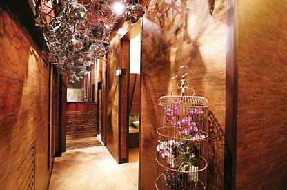 以華麗金屬色調(diào),搭配鮮紅的休憩椅,大片珠簾環(huán)繞中島化妝臺(tái)區(qū)域,水晶燈及金色雕框鏡子環(huán)繞其間,呈現(xiàn)金碧輝煌的雍容氣度。值得一提的是,其中一間廁所,針對(duì)仕女特別設(shè)置自動(dòng)沖水的下身盆,如此貼心的設(shè)計(jì),比五星級(jí)還五星級(jí),讓如廁也是一種人生的享受!