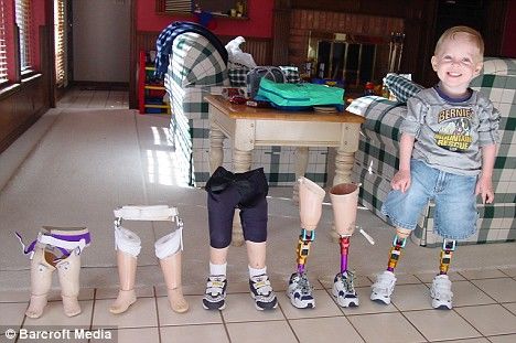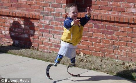 據(jù)報(bào)道,由于科迪生下來就患有一種罕見的骶骨發(fā)育不全癥,他的一條腿天生缺少脛骨和膝蓋骨,另一條腿的膝蓋天生無法彎曲,所以他根本無法自然走路。在醫(yī)生的建議下,當(dāng)科迪15個(gè)月大時(shí),醫(yī)生通過手術(shù)截除了科迪膝蓋以下的部分,并為他安裝了一副假肢。