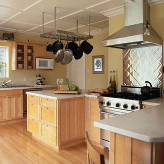 民以食為天,廚房向來在家居生活中占據(jù)著非常重要的地位。由于飲食習(xí)慣不同,中國傳統(tǒng)廚房內(nèi)往往油煙籠罩,人們裝修時不得不使用耐臟的材質(zhì),在設(shè)計上也乏善可陳,只求容易清潔;而西方人做飯很簡單,也就沒有這樣的約束,廚房做得很個性、很漂亮。