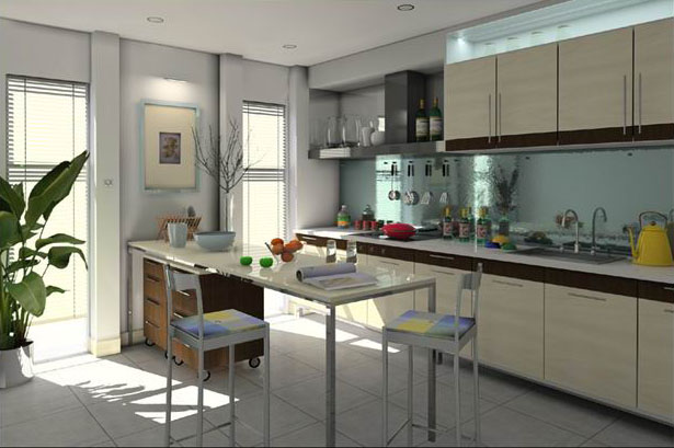 提醒:對于半開放式的廚房,要注意戶外風向,否則油煙味就容易吹回屋內。建議廚房窗戶使用百葉窗,冰箱不要靠著被陽光照射的墻壁。