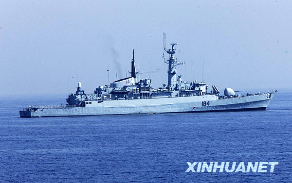 3月12日,巴基斯坦海軍“巴德爾”號艦在***海參加營救“落水人員”演習(xí)。新華社記者查春明攝