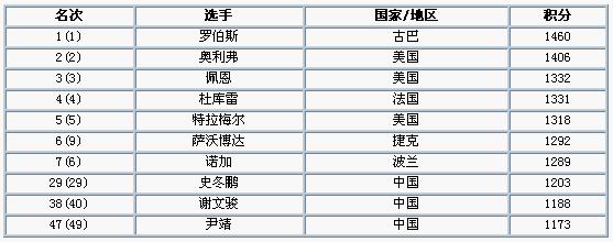 中國軍團(tuán)中,史冬鵬繼續(xù)保持在第29位,而劉翔師弟謝文駿和尹靖均上升2位,分別排在第38位和第47位。而另一位中國選手紀(jì)偉排名上升4位,暫列第84。