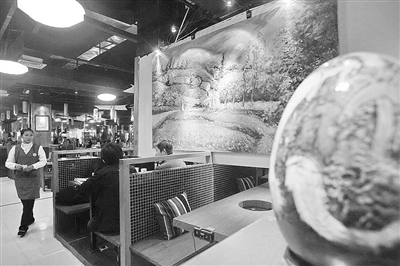 600平米的火鍋城,各處皆有藝術(shù)氛圍。