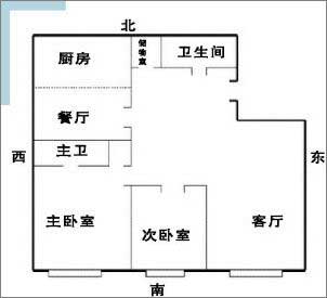 此戶型圖為東北缺角,東北角凹進去了3分1的位置,那么東北角代表著家中的男子,和在商業(yè)中的地位,也可稱為靠山,如果沒有了東北角,那么就相當于沒有了靠山、財山和地位,或者是家中的男子不成器。