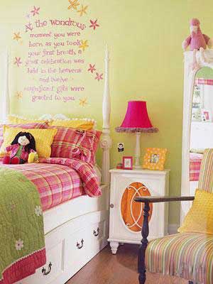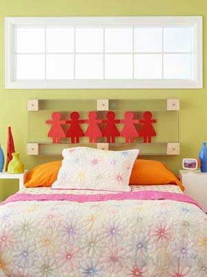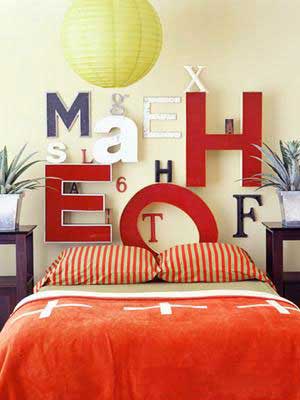 這估計(jì)是最有創(chuàng)意最簡單的床頭設(shè)計(jì)了。用一種歡快的字體在床頭的位置題寫一句孩子最喜歡的箴言。