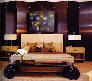 臥室:上世紀(jì)20年代的海邊度假帳篷。戀母情節(jié)設(shè)計(jì):超長(zhǎng)毛絨織品裝飾的坐臥兩用長(zhǎng)椅。