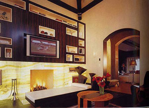 書(shū)房:時(shí)髦中顯現(xiàn)精致。事故男人在此德三條線索,6個(gè)展示世界各國(guó)首都的玻璃墻柱,價(jià)值75萬(wàn)美元的Hans Hofmann繪畫(huà)、3臺(tái)索尼等離子電視、分別用英語(yǔ)、日語(yǔ)和西班牙語(yǔ)播音。