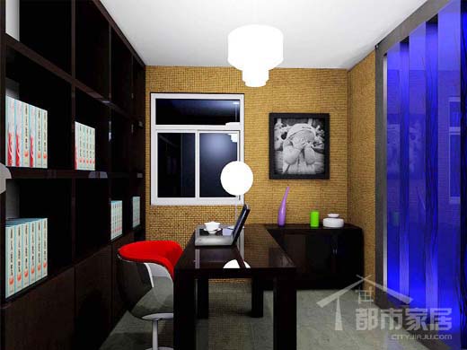 書(shū)房是男主人的空間,在大方向的定位上,選擇了頗為深沉的深棕色家具,這樣一來(lái),一種簡(jiǎn)約的中式風(fēng)格就躍然于上,配上肌理感覺(jué)非常強(qiáng)的壁紙,整個(gè)書(shū)房有種亦古亦今的感覺(jué)。