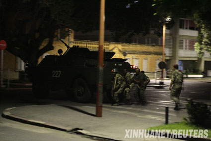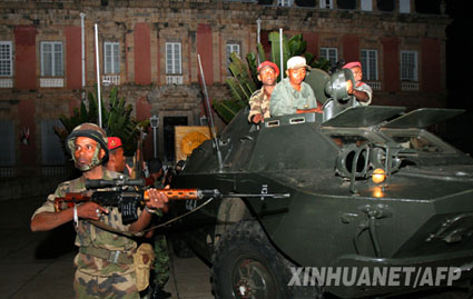當(dāng)?shù)貢r(shí)間16日晚約7時(shí),武裝部隊(duì)向位于市中心一座山上的總統(tǒng)府發(fā)起攻擊,首先發(fā)射了兩枚火箭彈,并鳴槍警告總統(tǒng)府守衛(wèi)部隊(duì),隨后用擴(kuò)音器朝守衛(wèi)部隊(duì)喊話,要求他們投降。早已在總統(tǒng)府附近待命的兩輛裝甲車(chē)隨即開(kāi)了過(guò)來(lái),撞開(kāi)了總統(tǒng)府的鐵柵欄門(mén)。