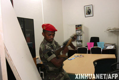 3月16日,一名馬達(dá)加斯加武裝部隊(duì)士兵持槍進(jìn)入位于塔那那利佛市的一處總統(tǒng)府辦公室。當(dāng)晚,馬達(dá)加斯加武裝部隊(duì)占領(lǐng)了位于塔那那利佛市中心的總統(tǒng)府,接管過(guò)程中發(fā)生沖突,總統(tǒng)府附近的中央銀行大樓遭到炮擊。 新華社/法新