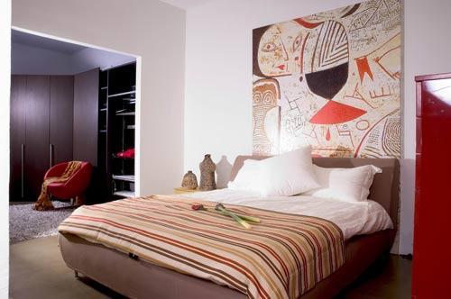 臥室中“三角形”的裝飾物過多,主不祥;床頭掛書,以山水花草為佳,忌以老虎、蟲獸為背景;床上忌吊蘭花、緞帶花及大吊燈,否則影響居住者的健康。