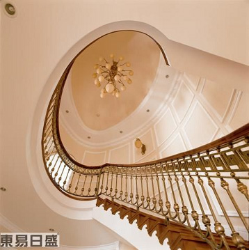 樓梯是別墅中不可或缺的基本元素,在功能上,它承上啟下;在美學(xué)上,它可以有著遞進(jìn)的空間層次美。在風(fēng)格上,它是可以有代表演繹古典風(fēng)格的主要標(biāo)志之一。所以樓梯在本案中是我設(shè)計(jì)的重心之一。在質(zhì)地上,為表現(xiàn)整個(gè)居室的沉穩(wěn)內(nèi)斂,我選用了實(shí)木材質(zhì),而選擇亮色——類似于紅檀香色的色彩——?jiǎng)t是為了配合整體風(fēng)格的古典氣質(zhì)和光線和諧。