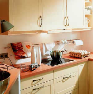 無論哪種材質(zhì)都怕高溫侵蝕,使用中應(yīng)當(dāng)注意避免熱鍋、熱水壺直接與櫥柜接觸,最好置于鍋架上;操作中應(yīng)盡量避免用尖銳的物品觸擊臺(tái)面、門板,以免產(chǎn)生劃痕。應(yīng)在砧板上切菜、料理食物,除了可以避免留下刀痕之外,還更容易做清潔衛(wèi)生;化學(xué)物質(zhì)對很多材質(zhì)的臺(tái)面有侵蝕作用,例如,不銹鋼臺(tái)面沾到鹽就有可能生銹,因此平時(shí)還應(yīng)注意避免將醬油瓶等物品直接放在臺(tái)面上;人造板材櫥柜應(yīng)避免水漬長時(shí)間滯留在臺(tái)面上。