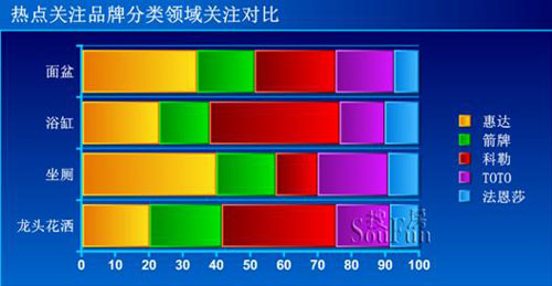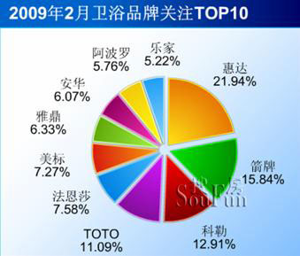 通過對09年2月份衛(wèi)浴市場品牌、產(chǎn)品關(guān)注度的一系列調(diào)查,結(jié)論如下: