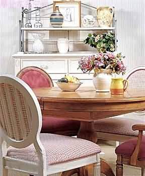 由于不少家庭出于戶型的考慮,并未特地開辟家居餐廳,但卻可以稍費心思在客廳的某個位置標(biāo)新立異,于是一個特殊的就餐環(huán)境便能在客廳的范圍內(nèi)“渾然天成”。白色櫥柜因為鐵藝擱架的設(shè)計變得有些與眾不同,上面可以擺放些物品,集收納、展示于一體。而原木色餐桌與方格布藝餐椅椅墊相互搭配,形成悠閑清爽的地中海風(fēng)格。就餐的心情便像地中海的微風(fēng)迎面吹來般享受愜意。