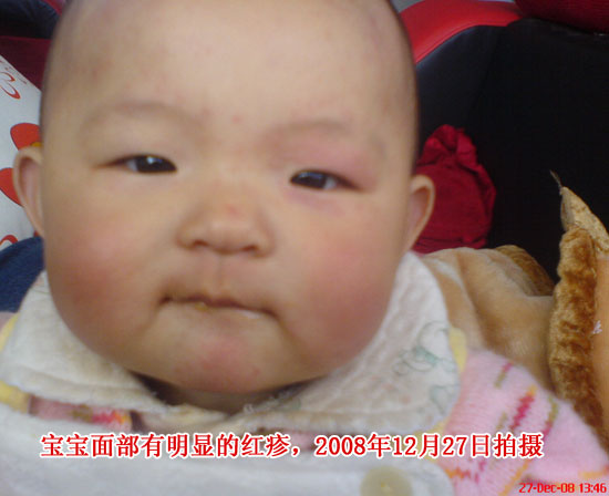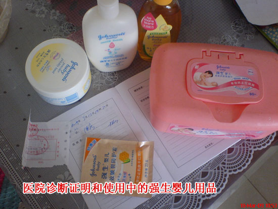 一位網名為“Jane”云南的母親給記者發(fā)來了她對強生嬰兒用品的控訴信,信中寫道“我的寶寶出生于2008年6月10日,四公斤,生下來的時候,已經又白又胖,很是逗人喜愛。一直信任強生的產品,所以在生寶寶之前,就已經給寶寶準備好了一系列的強生洗護用品。從寶寶出生,每天都使用強生系列。寶寶三個月開始,我給寶寶買了‘強生嬰兒長效皴裂防護霜’也就是寶寶噩夢的開始。寶寶開始長濕疹,因為寶寶一直流口水,我們一直以為是因為口水導致的。寶寶用這個霜一直到8個月大的時候,濕疹非常嚴重,整個小臉又疼又癢,搽霜的時候還大聲的哭鬧,無知的我,以為多搽一點就會好,每天寶寶睡著了,就搽很多在她的臉上。結果寶寶濕疹越來越嚴重。寶寶一直使用強生的嬰兒無淚配方的洗發(fā)香波,生下來的時候,頭發(fā)已經很長了,滿月減了一些,發(fā)根處留了大概5毫米滿長。結果,5個月開始,有枕禿,現(xiàn)在還很嚴重。我和她爸爸頭發(fā)都很好,又黑又密的,偏偏寶寶的頭發(fā)越來越差,昨天給小家伙游泳還用了這個產品,現(xiàn)在才知道是這樣的原因。寶寶一直都用強生的牛奶沐浴露,身上起過疹子,如圖片所示,全身都是,很癢,因此寶寶睡不著覺,當時也不知道什么原因??戳撕芏啻筢t(yī)院,都沒有看好。在一家傳統(tǒng)的中醫(yī)那里,花10元買到一小包藥粉面,聽說是維A和維E的面粉,攙在郁美凈里使用,黃黃的。用了一周,效果很明顯,濕疹已經好了,但是寶寶的小臉已經沒有像以前那樣白白的了,現(xiàn)在看上去都是黑黑的!寶寶現(xiàn)在也一樣的流口水,口水也很多,不過這幾天濕疹一點都沒有了。我姓沈,在云南,我是一名英語教師。如果有需要,我愿意出來作證?!?