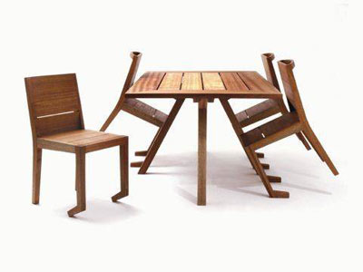 有趣的創(chuàng)意可以為家居帶來更多的生機。這款設計就通過在椅腿上做了一點小小的改動達到了非常有趣的效果。它將普通椅子的直腿增加了一段拐角,這樣當椅子不用的時候就可以將他們沿著拐角放倒,就像是下跪一樣。使得椅子與桌子之間更加緊湊。
