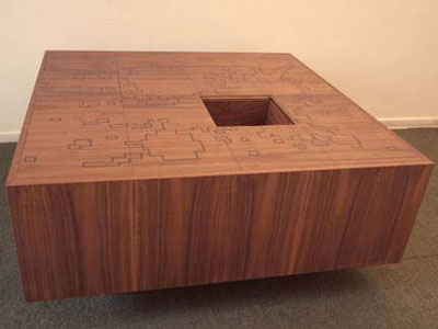 這款茶幾的的桌面由15塊自由活動的滑塊組成,你可以像玩拼圖一樣將它們隨意活動,從而使用隱藏在下面的16個儲物盒。
