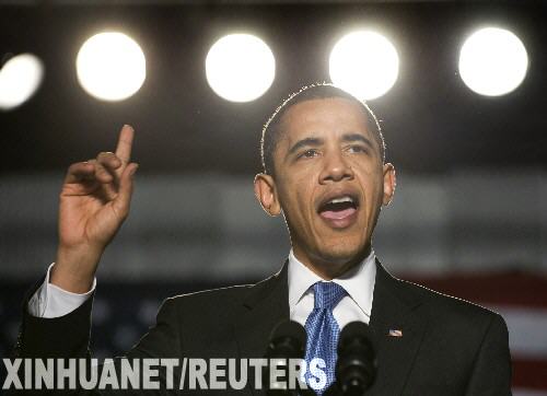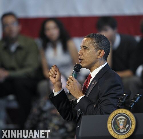 3月18日,美國(guó)總統(tǒng)奧巴馬在加利福尼亞州橙縣小鎮(zhèn)科斯塔梅薩的一個(gè)群眾**上講話。當(dāng)日,奧巴馬在加利福尼亞州這個(gè)群眾**上說,有跡象顯示**的經(jīng)濟(jì)刺激計(jì)劃正在取得成效。這一計(jì)劃將在今后兩年內(nèi)為加州創(chuàng)造或保留近40萬個(gè)就業(yè)機(jī)會(huì),而全美國(guó)新增或保留的就業(yè)機(jī)會(huì)將達(dá)到350萬個(gè)。 新華社/路透