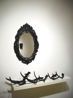 鏡子“女巫”在魔幻電影里,黑色一定是“女巫”的代表色,那些從惡魔世界帶來的鏡子絕對是奇幻的道具,丑陋的女巫們在精致的鏡子前發(fā)問:“誰是最美麗的女人?”邪惡的鏡子永遠(yuǎn)給出一個讓女巫們瘋狂的回答。如同用瀝青包裹的鏡框絕對帶有魔幻的味道,而鏡下的裝飾品則更似“女巫”們的玩具。