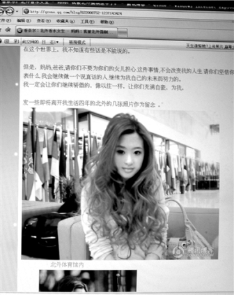 此外,昨日凌晨,王亭亭在博客中再度聲稱(chēng)“即日起本博客不再更新”,并向校方道歉。