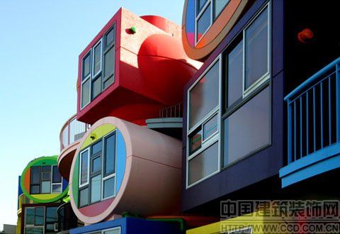概要: 坐落在東京郊外三鷹市的一座老年公寓堪稱世上最花哨的住宅,由日本藝術(shù)家荒川修作和他的妻子、詩人瑪?shù)铝?amp;#183;琴斯根據(jù)多種科學規(guī)律設(shè)計而成,其中包括神經(jīng)學及實驗現(xiàn)象。這座建筑外形奇特,色彩艷麗,建筑內(nèi)部也是波瀾起伏,色彩繽紛。設(shè)計者的座右銘是“建筑對抗死亡”?! ∵@棟住宅日本名稱叫“三鷹天命反轉(zhuǎn)住宅”翻譯成中文為“轉(zhuǎn)運閣”。這座住宅三層建筑,只有九戶人家。