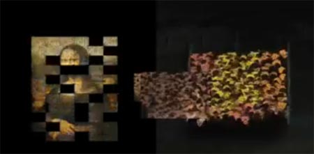 接下來的畫面更令人驚嘆:身披五顏六色發(fā)光二極管“外套”的羊聚集在一塊方形場地里,乍看之下并沒有什么特殊之處。但隨后畫面揭示,每群羊都構(gòu)成作品的一小部分,全部拼好后,竟然組成了達(dá)芬奇的名畫《蒙娜麗莎》。