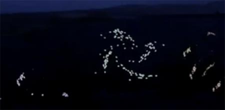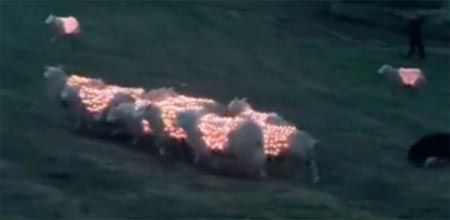 畫面上,一只牧羊犬身披發(fā)光二極管“外套”,奔上山坡,像一團(tuán)焰火躥上漆黑的夜空。突然,預(yù)先“埋伏”在山坡上的羊群四散,身上的發(fā)光二極管“外套”同時(shí)亮起,宛如煙花綻放。