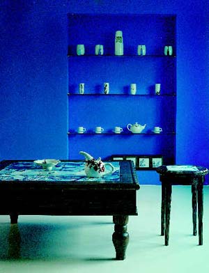 青花瓷外表清淡素凈,已有一種不可褻玩之意,而質(zhì)地硬朗,更有一種不從流俗的風骨。單件欣賞可,真要與其他家什搭配得妥當卻是不易。好就好在它一切淡定自然、自在我心。于是才終于等到那個懂得的人,以及那些沉著的老木。