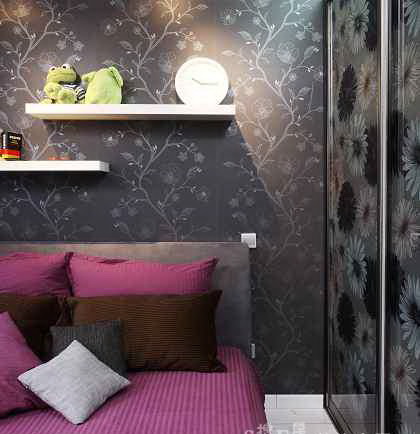 5、色彩上墻面主要采用了黑底白花的主設(shè)計,但并不是滿鋪的,而是有主次的,有變化的布置。這樣不至于會讓整個空間太壓抑。