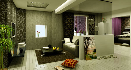 2、由于主空間直接對著門,在中間有一個半墻設(shè)計,很好隔出了臥室、書房和走道。而且對空間沒有損壞。臥室和書房間也是沒有實墻的,采用的是沙簾來分隔功能區(qū)。這樣的設(shè)計都很好的將面積小的問題化解了。