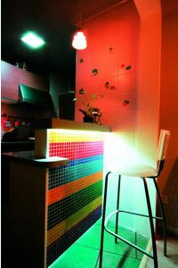轉(zhuǎn)過身,我們被一個(gè)精致的小吧臺(tái)吸引了,吧臺(tái)上七彩的條紋馬賽克,被燈光照耀得格外絢麗。小吧臺(tái)是蘇珊跑了好多市場,用七種顏色的馬賽克拼成的,不僅用來裝飾,還肩負(fù)著分割廚房和客廳的重任。蘇珊說,平時(shí)吧臺(tái)上放一瓶自釀的干紅,酒一天天變得甘醇清洌,日子也仿佛甜蜜了起來。