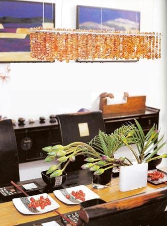 仔細(xì)看一下餐具很有日式風(fēng)格,和上面的吊燈相對應(yīng),很有情趣。