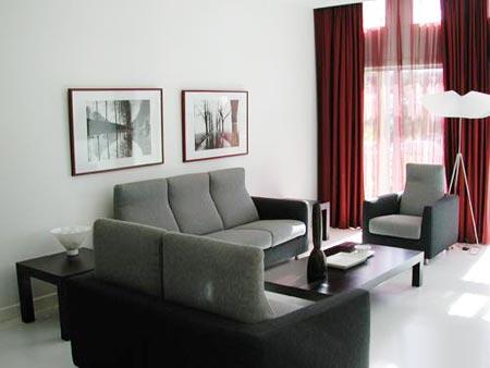 沙發(fā)區(qū),黑灰白紅色,四種顏色搭出品質(zhì)感。