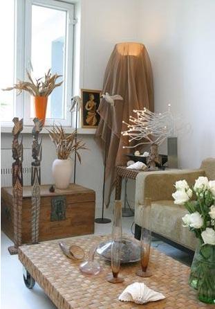 藤編的茶幾,上面的裝飾以及旁邊的裝飾如果不告訴你,你估計都不知道是什么。
