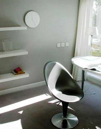 陽臺上又設(shè)了一個書桌,坐椅非常有質(zhì)感,陽光透進來射在坐椅上,就像一件藝術(shù)品。