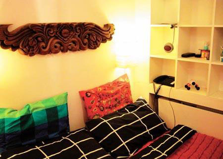 臥室顏色比較鮮艷,床頭上的裝飾與眾不同。